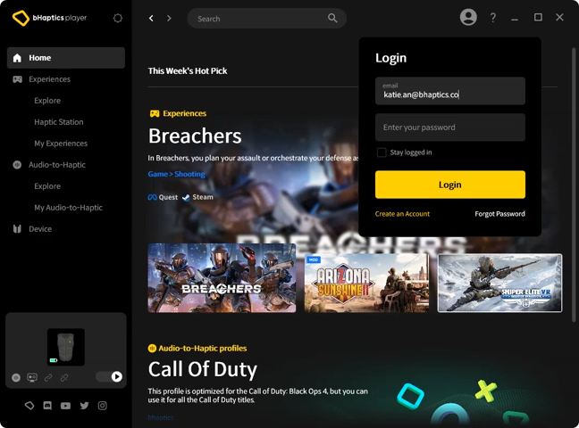 - Open bHaptics Player on your Windows PC.