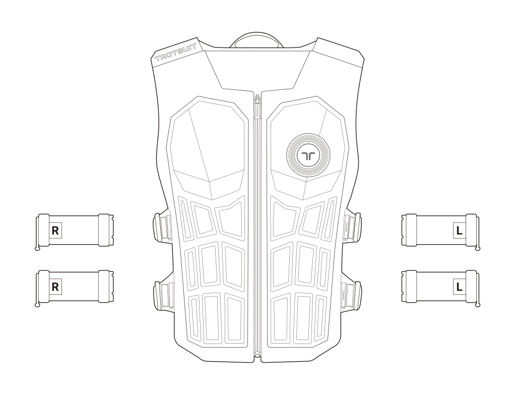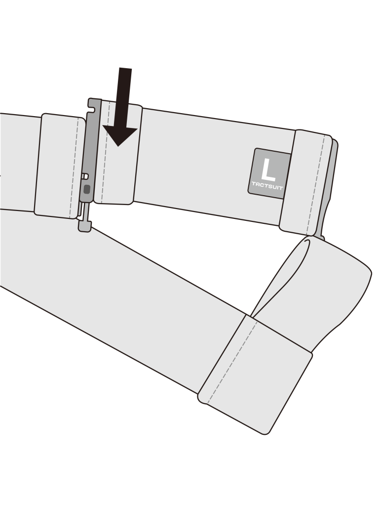Push the strap’s lock downward and pull out to remove it completely. (If bHaptics logo is facing upwards, push the lock down).