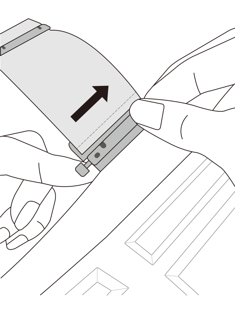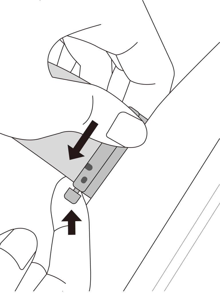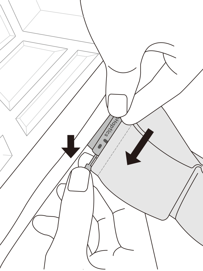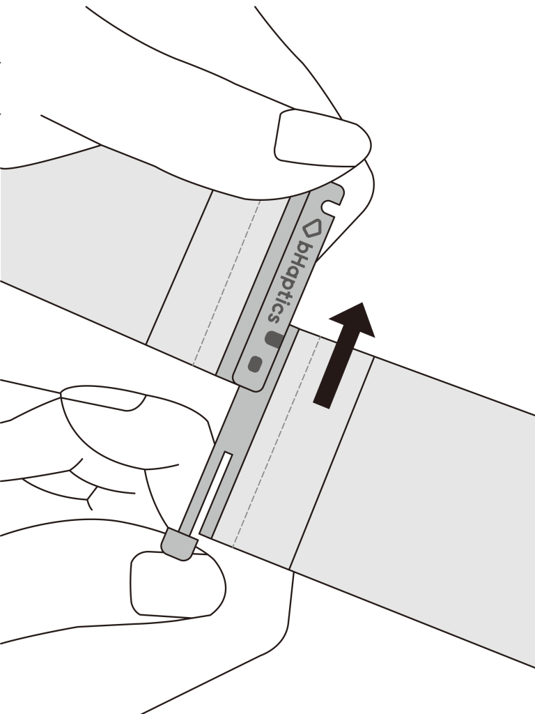 With the bHaptics logo facing downward, push the strap’s lock upward to remove it.