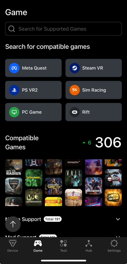 Open the bHaptics Player mobile app and go to the “Games” tab.