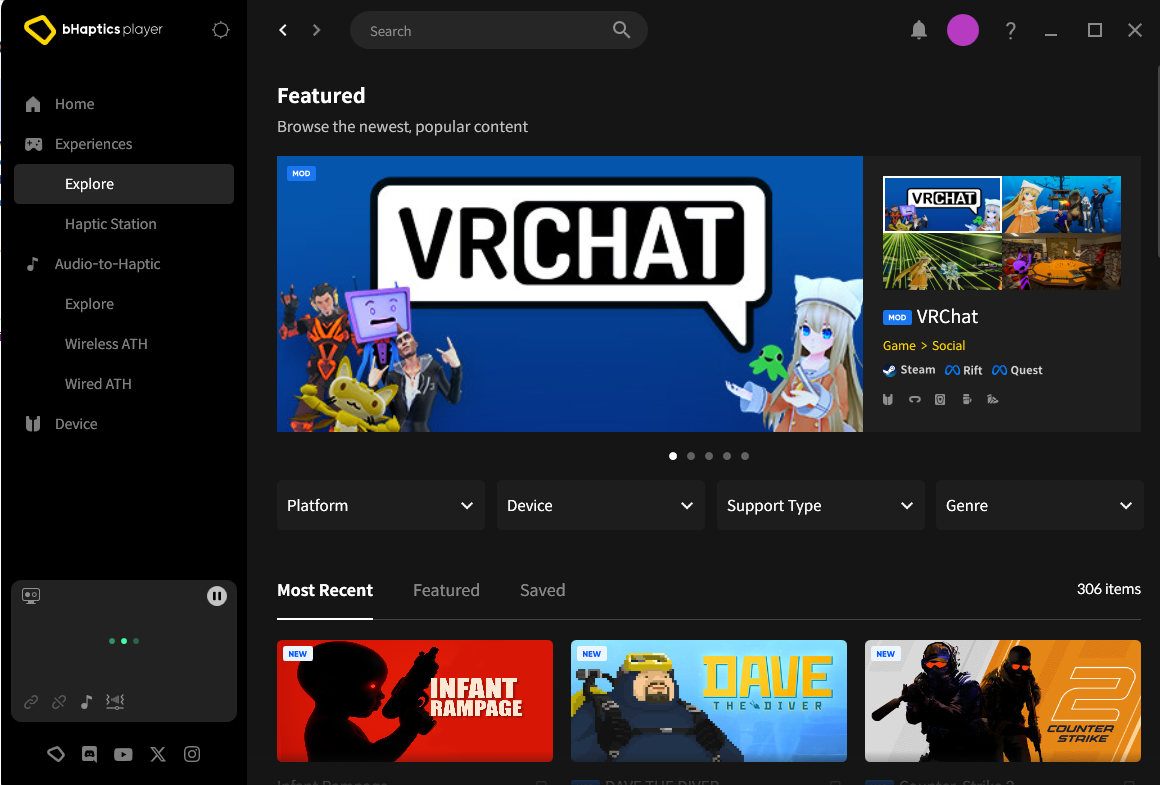 - Open bHaptics Player and go to the Experiences > Explore.