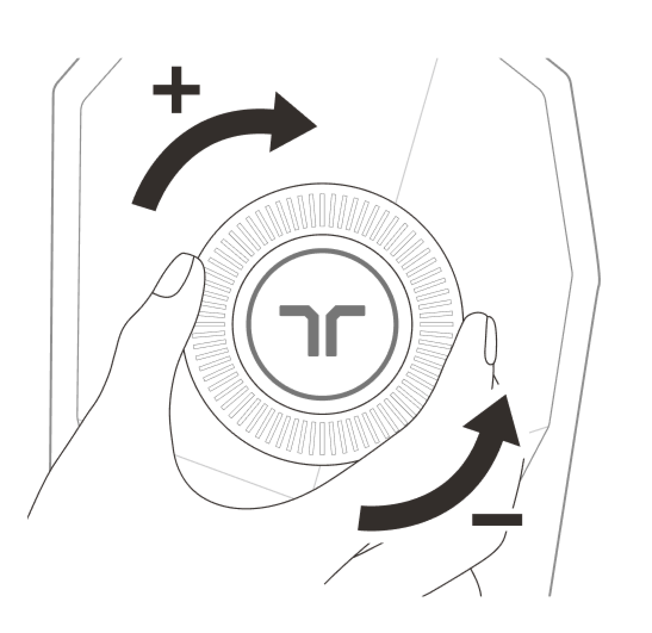 Rotate the wheel on the front controller clockwise to increase intensity.