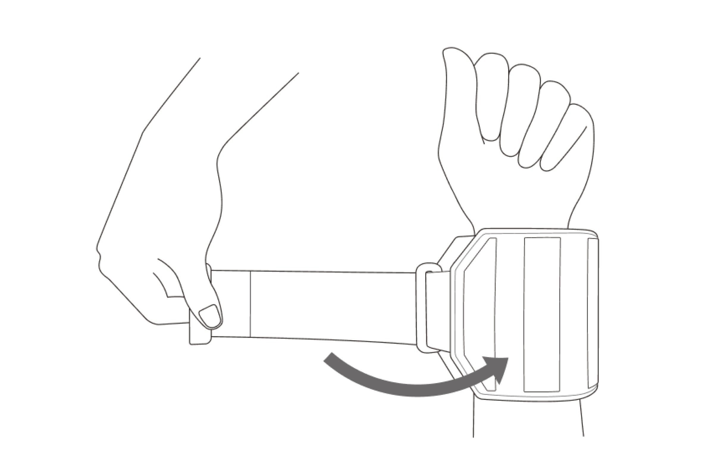 - Attach the end of the main strap to the Velcro to fasten the device around your arm.