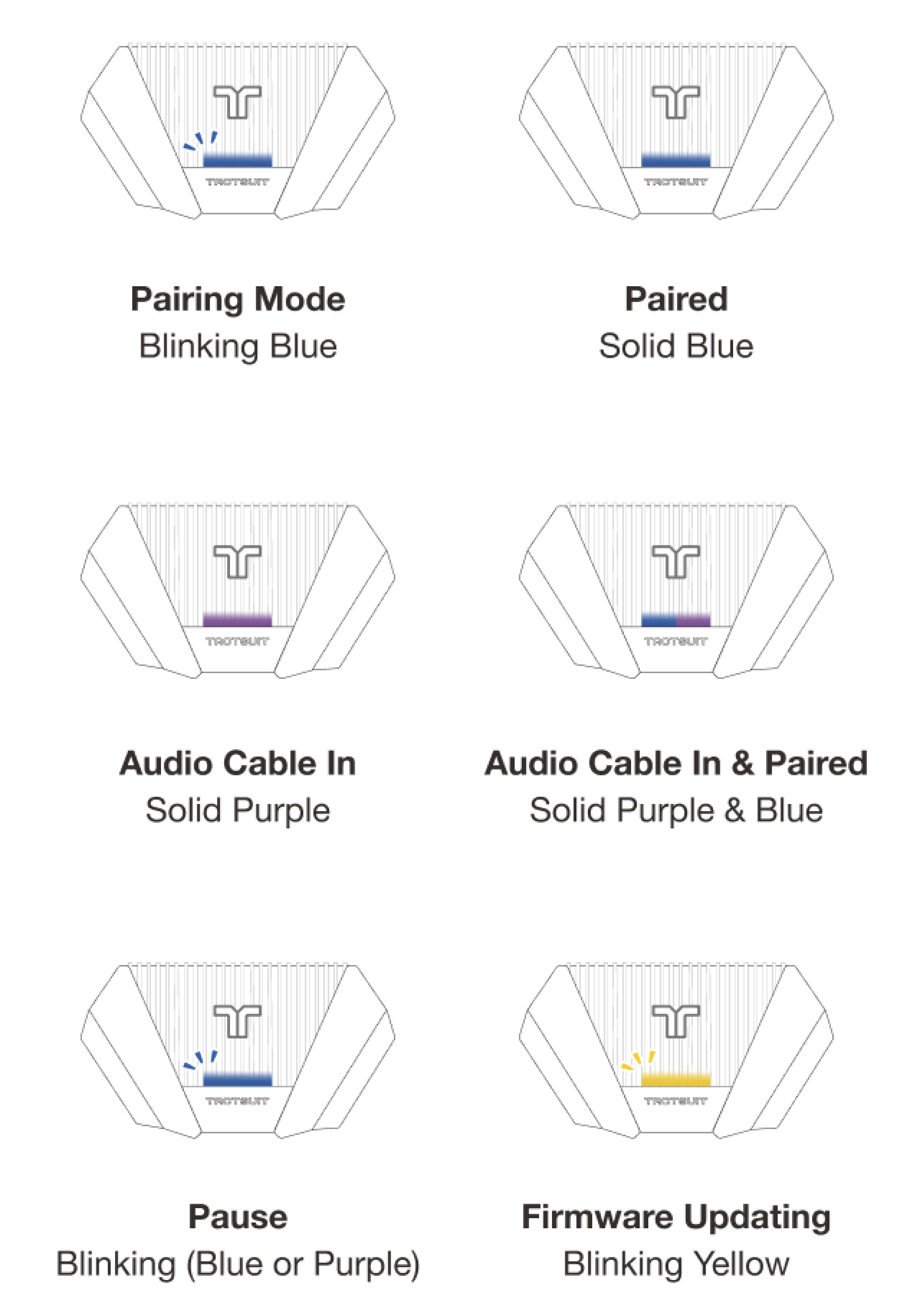The LED indicator on the Back Controller lets you quickly check the current status of your TactSuit Air. Each color and behavior of the LED light represents a specific status or function, helping you understand the device at a glance.