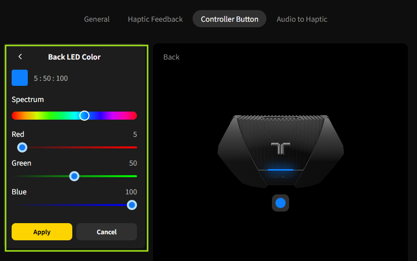 You can customize the LED indicator color of your TactSuit Air using the bHaptics Player for PC. This feature lets you personalize your device by changing the back LED color independently.