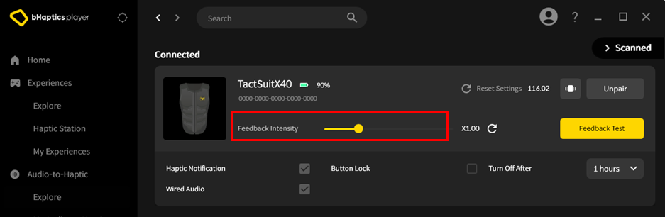 When you are not using your TactSuit X40, you can turn off it manually or automatically.
