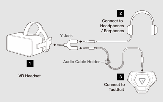 - Connect one end of the audio cable to the Y-jack and the other end to your TactSuit X40.